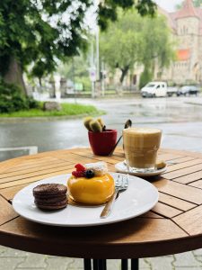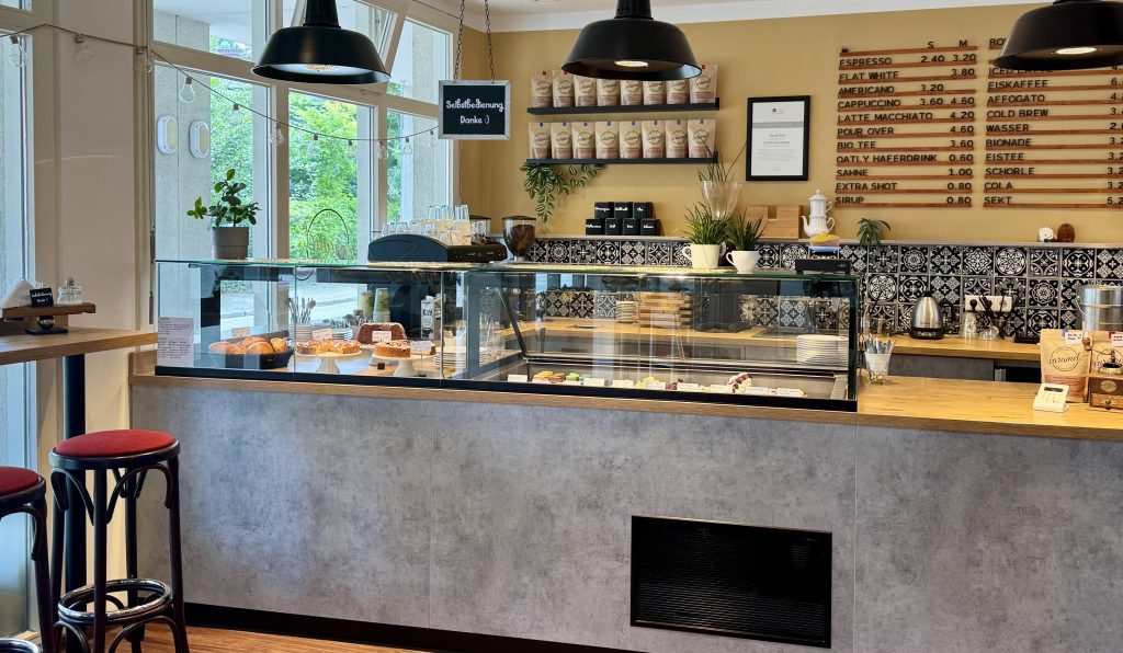 Mein kleines Café bietet 16 Plätze im Innenbereich und 14 Plätze im überdachten Außenbereich. Saisonal biete ich euch hier neben den hausgemachten Leckereien auch verschiedene Heiß- und Kaltgetränke an. Beispielsweise im Sommer einen Eiskaffee mit erfrischendem Cold Brew und Eiscreme und im Winter eine heiße Schokolade mit hochwertiger französischer Kuvertüre von „Valrhona“.